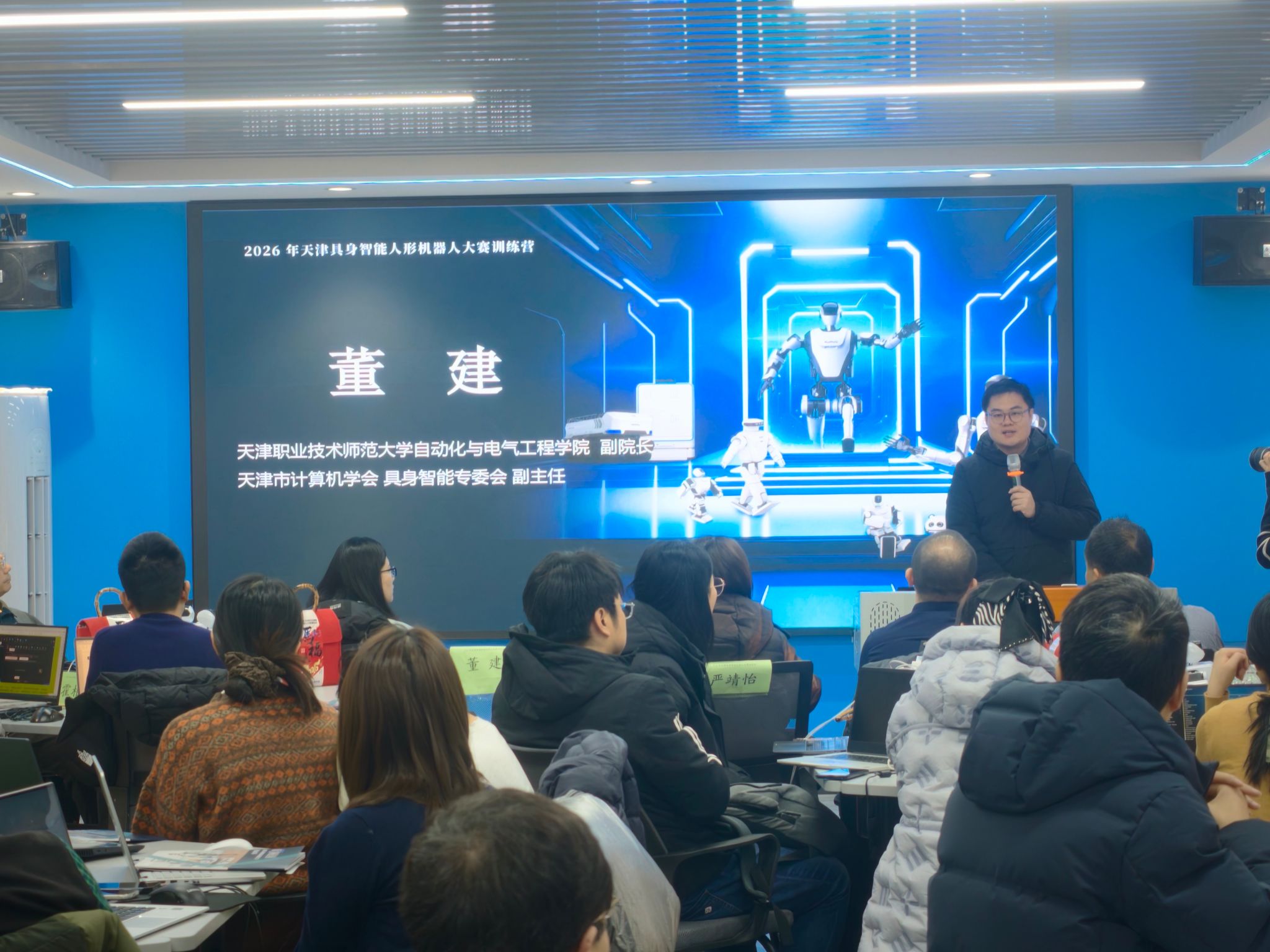 智能控制与机器人现代产业学院联合天津市计算机学会、天津市计算机学会具身智能专委会、天津启诚伟业科技有限公司、天津理工大学AI科教融汇学科交叉创新中心、乐聚通研(北京)机器人技术有限公司等,共同举办2026年天津具身智能人形机器人大赛训练营,吸引了众多高等教育及职业教育领域的师生踊跃参与。