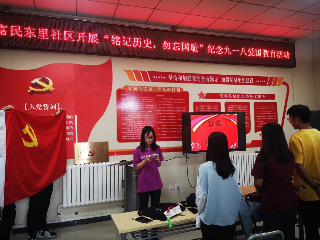 积极组织学生前往校外实践基地富民东里社区开展纪念“九一八”主题团日活动。学院青年志愿者协会成员、电自测控学生党支部党员参加。