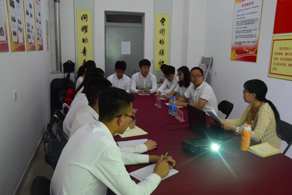 青骨班在党团活动室开展学习《共产党宣言》的交流活动,社科部郭清老师、学院团委书记仲伟邦及青骨班全体成员参会。