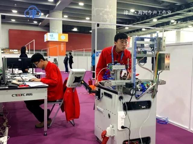 自师1711班学生贺涛涛、电气1714班学生李云鹏代表天津队出战,经过激烈角逐,沉着应战,从来自全国的27支代表队,54名选手中脱颖而出,一举夺得工业4.0项目金牌。