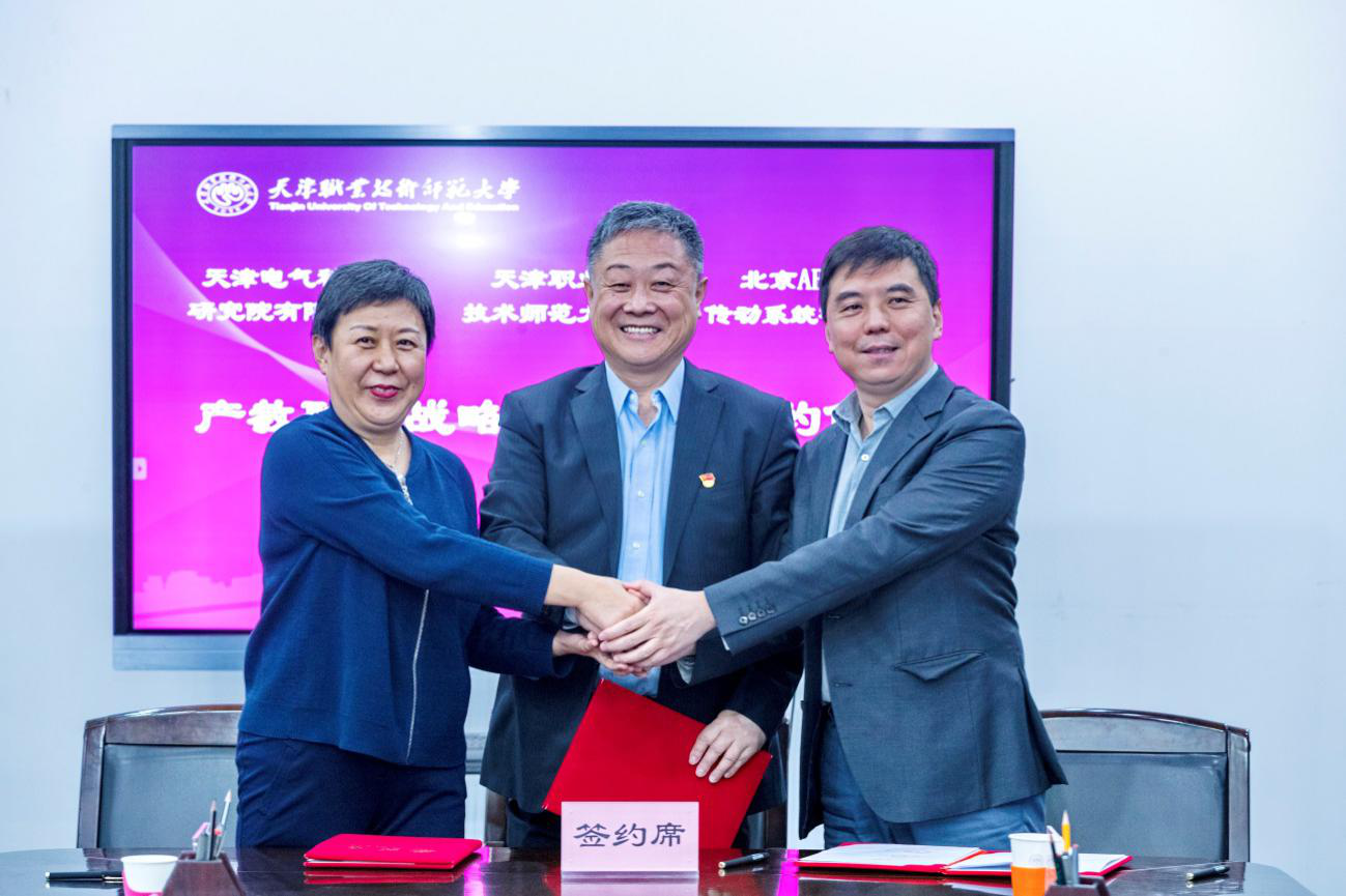 本次签约,标志着学校与天津电气科学研究院有限公司、北京ABB电气传动系统有限公司正式开展校企合作。三方将在工业互联网、工业物联网、工业人工智能、数字孪生、智能制造、电气传动技术/电气工程、能效管理、机器人和自动化等智能科技相关专业、技术和产业方向开展全面合作。共同开发相关专业、岗位和职业的教育培训资源,通过科研课题共同开发相关领域技术、产品并实现成果提炼和转化。共同打造高水平协同创新的人才培养产业学院和产业实践基地。共同努力建设院士工作站、智能科技产业联盟等产学研合作服务平台。