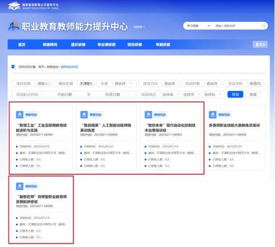 按照教育部教师工作司《关于组织参加国家级职业教育培训基地2025年培训项目的通知》要求,在教师工作司的组织下,经过项目申报及审核,天津职业技术师范大学(自动化类国家级职业教育“双师型”教师培训基地)发布以下4项国家级职业教育培训基地2025年培训项目,已同步在国家智慧教育公共服务平台“职业教育教师能力提升中心”板块。现面向全国职业院校骨干教师招生。各项目报名截止日期为培训开始前20天。