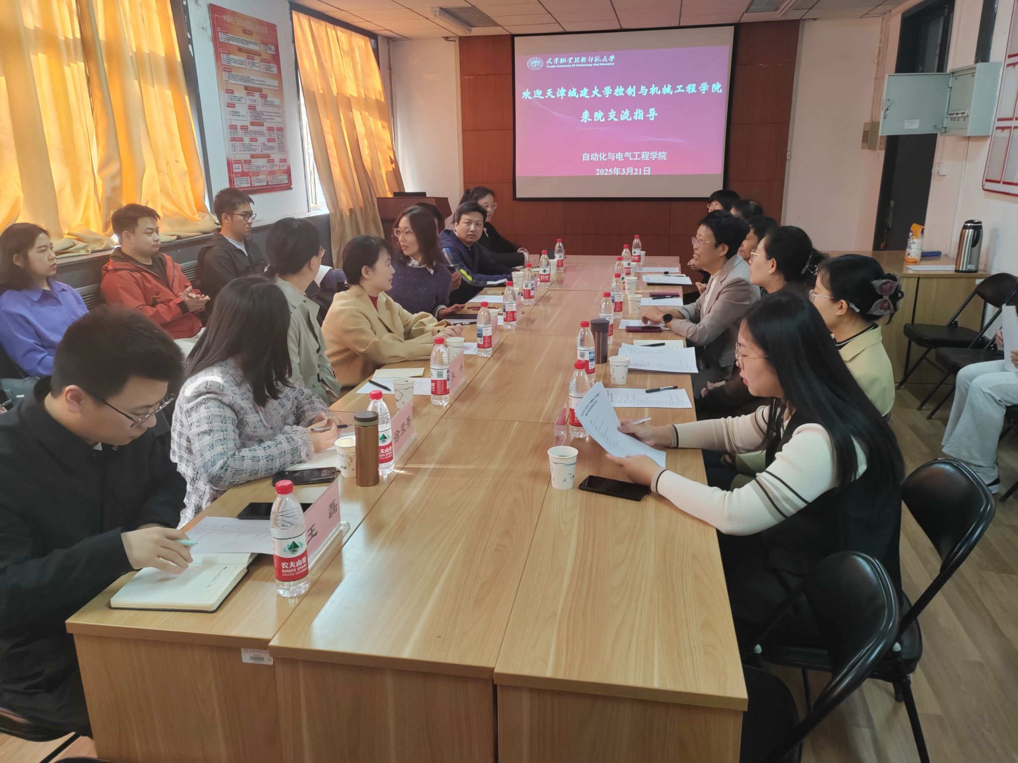 与天津城建大学控制与机械工程学院在自动化东楼205会议室召开交流座谈会。双方围绕人才培养、实践教学、学生工作等方面开展合作进行讨论与交流。天津城建大学控制与机械工程学院党委副书记贾晨选、魔镜号
