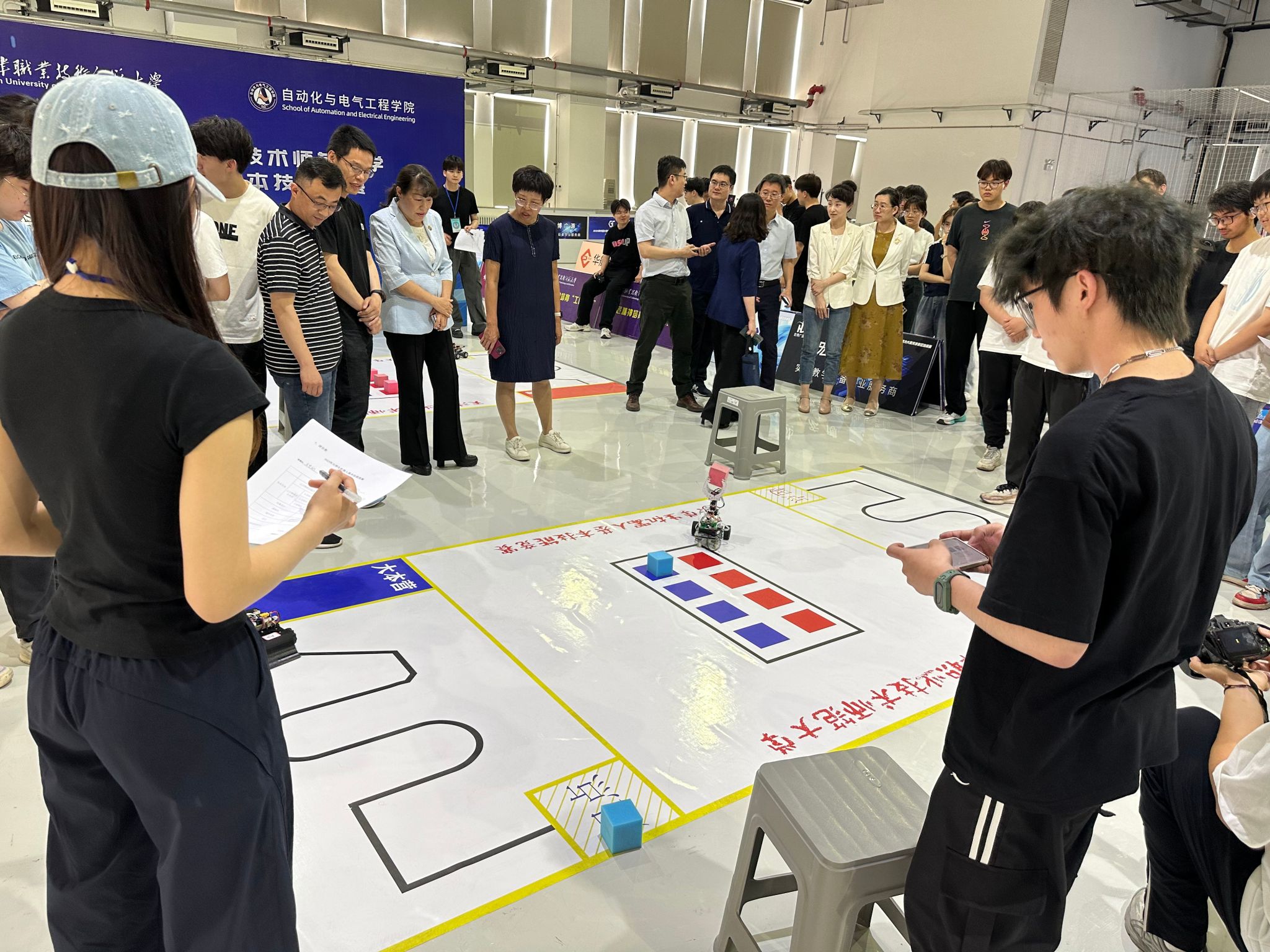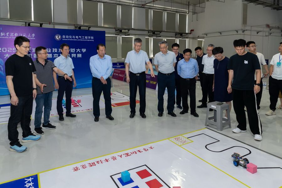 2025年大学生机器人基本技能竞赛决赛在工程实训中心A座圆满收官。校党委书记张金刚、校长郑清春、党委副书记李靖、副校长李富森、蔡玉俊莅临竞赛现场观摩指导。全校共92支队伍参加竞赛初赛,其中46支队伍入围本次决赛。