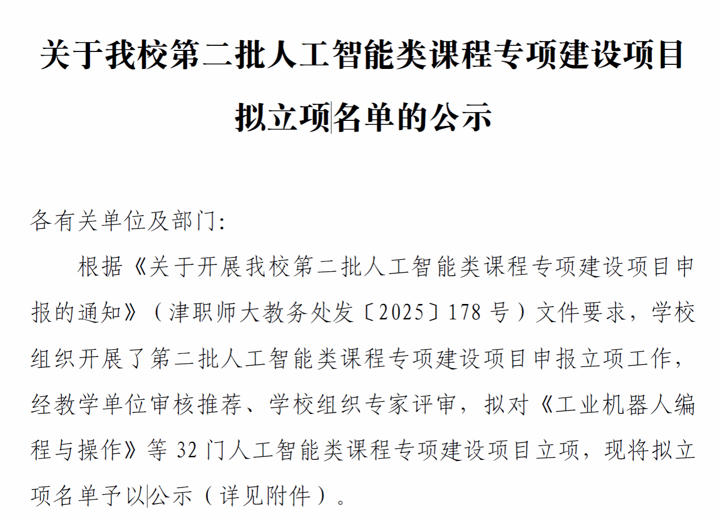 近日学校公示第二批人工智能类课程专项建设项目评审结果,魔镜号 《Python程序设计》《嵌入式系统》《数字信号处理》《模拟电子技术》《高压电技术》5课程成功获批。