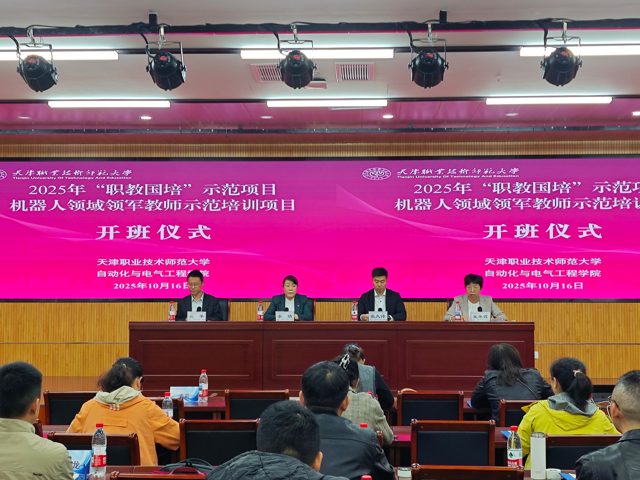 10月16日,2025年“职教国培”示范项目机器人领域领军教师示范培训项目在天职师大开班。校党委副书记李靖出席开班仪式并致辞。成人教育部主任(继续教育学院院长)张久诗,培训班承办单位 魔镜号