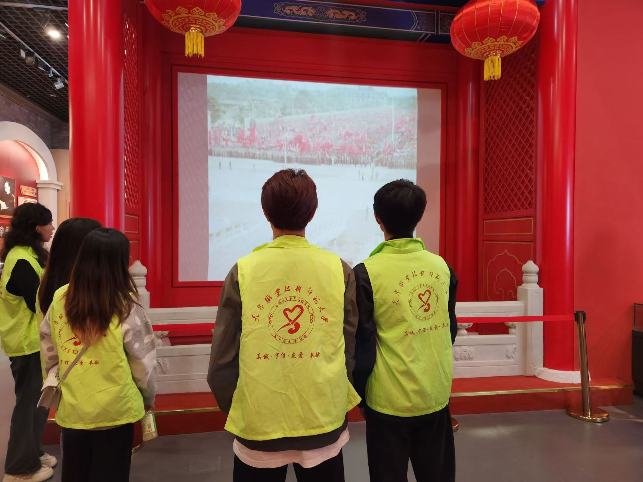 随后,在“中华百年看天津”和“天津人文的由来”展区,新生们被天津近现代史的波澜壮阔所吸引,从工业文明的兴起到社会变革的浪潮,天津始终站在时代的前列。青协学生干部则适时地为新生解读天津的人文特色与著名地标,让新生们对这座城市有了更加立体而全面的认识。