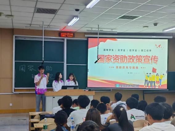 面向学院2024级新生举办国家资助政策宣讲会,传达资助政策的温暖与力量。本次活动由学生资助宣传大使李铭洋、彭瑞、张涵发起,学院学管会共同主办,学院辅导员刘娇主持,近200名学生参加活动。