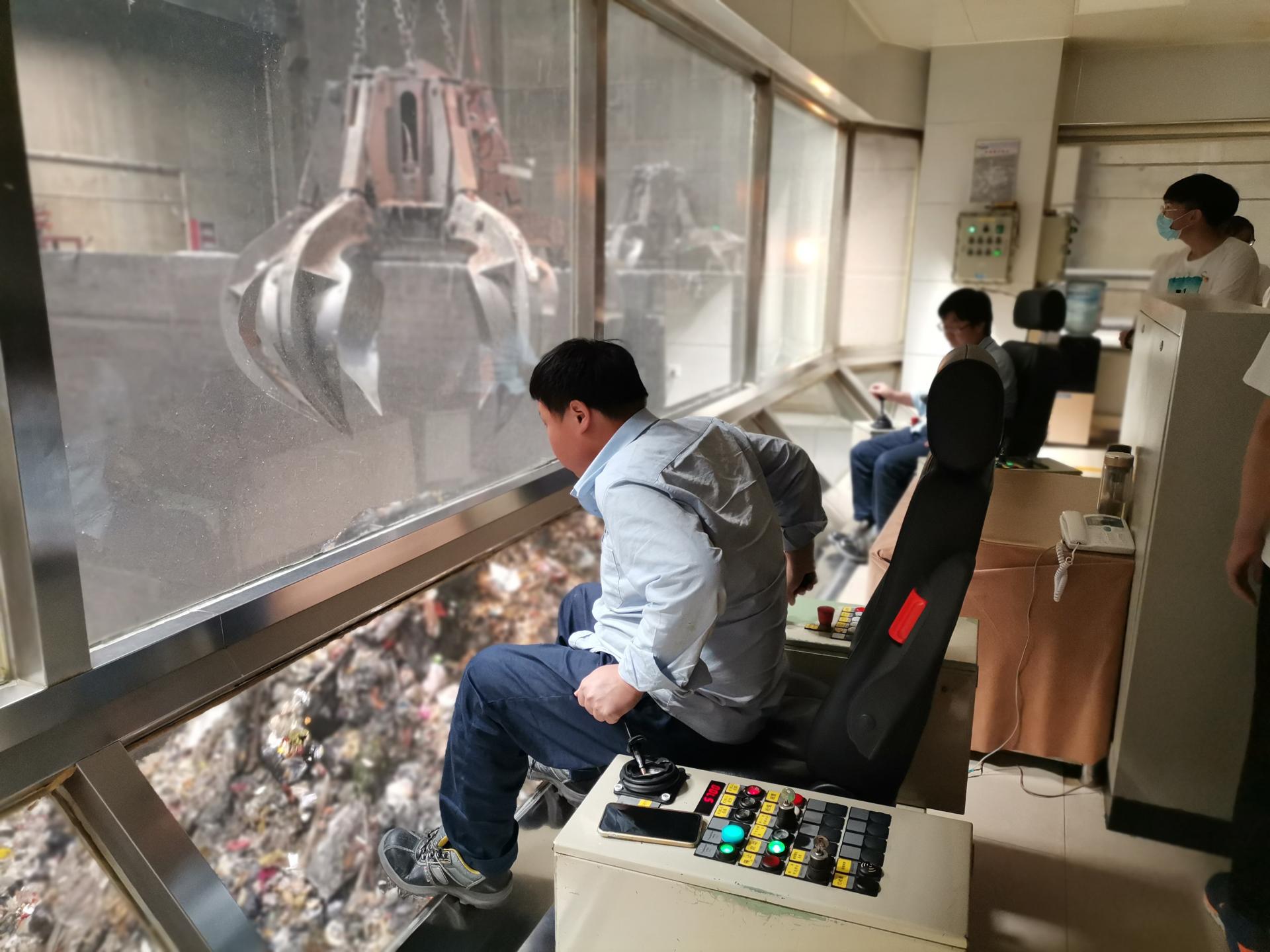 经过防疫检查,同学们进入泰达公司办公楼,通过模型了解到基本的垃圾处理知识。随后,大家跟随讲解人员来到垃圾吊控制室和总控室,通过实地观看和监控查看了解垃圾处理、焚烧、流出渣池的过程。
