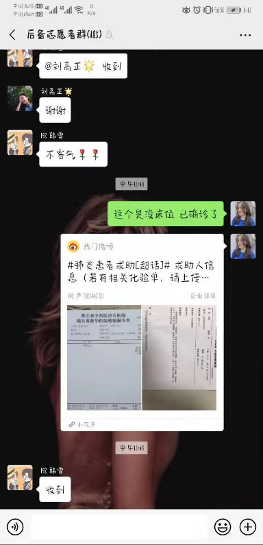 雷火救援群是由自媒体@新媒沈阳发起的线上志愿救助新冠肺炎患者的活动,我被分到了后备志愿群,群里的每一个人主要负责收集网络上患者的求救信息,同时联系当事人,将信息转发到救援总群,经过信息登记后再与线下志愿者对接联系。国难当头,待命在家,我只能尽力协助总群帮助患者,哪怕是一点点帮助就一定能够保持希望。