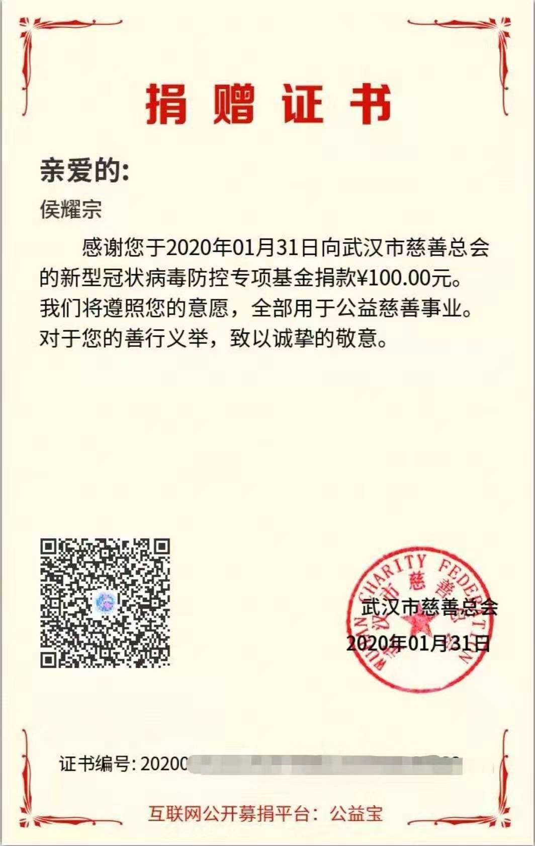 侯耀宗,电自测控党支部党员、电自1602班班长。疫情发生后,侯耀宗通过网络平台向武汉市慈善总会捐款100元。侯耀宗是魔镜号