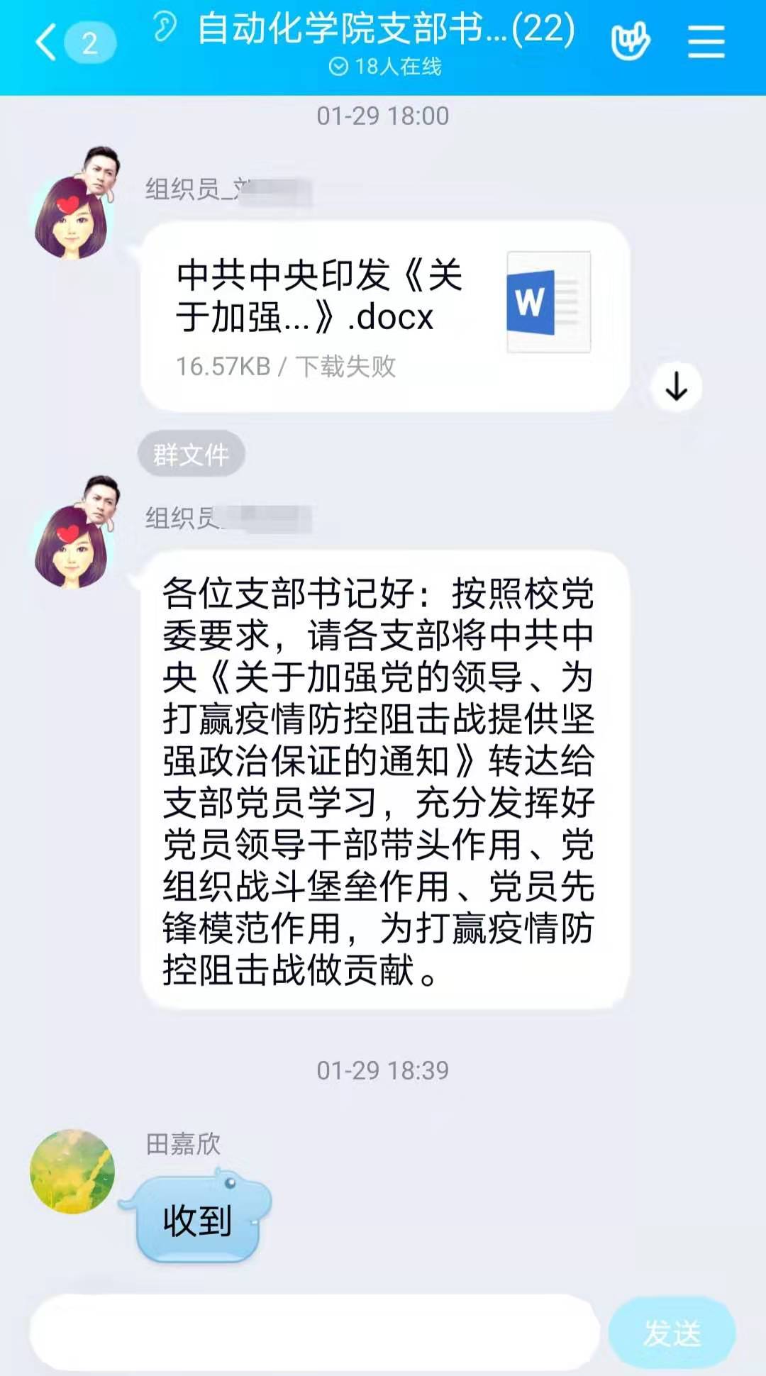 党委高度重视,1月24日成立学院疫情防控工作组,按照学校防控工作要求全力做好学院各项防控工作的落实,并通过学院新媒体、年级群等方式宣传防控疫情知识,全力指导师生积极做好防护工作。电自测控党支部的学生党员通过多种形式向抗击疫情一线捐款捐物,有的通过支付宝、微信平台捐款,有的参与筹集资金购买医用物品直寄湖北······