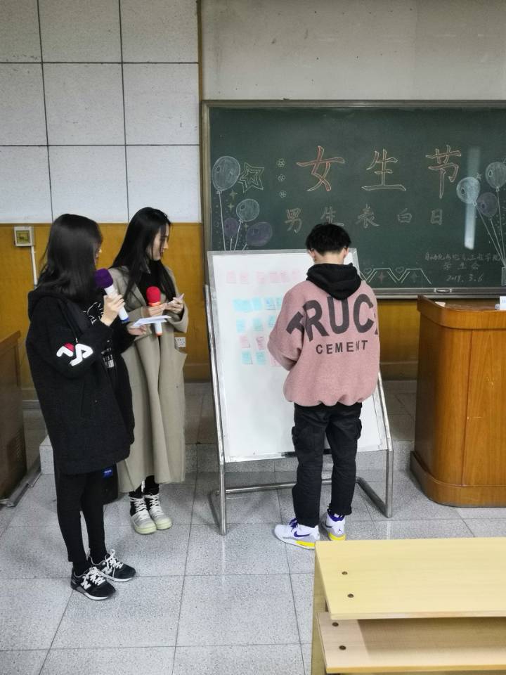 院学生会礼仪部向在座同学科普女生节的起源文化和各国风格迥异的女生节内容,介绍了我国历史上著名的自立自强女性代表,讲解女生在面试时应注意的公关礼仪,并用女生遭遇“校园裸贷”和出行遇险的实际案例,提醒女生提高自我保护意识,防范潜在危险。之后,同学们通过“猜歌名”、“分享交流”、“心愿漂流”、“幸运锦鲤”等互动小游戏增加相互了解,增进同学感情,现场男生也积极参加,热烈讨论。
