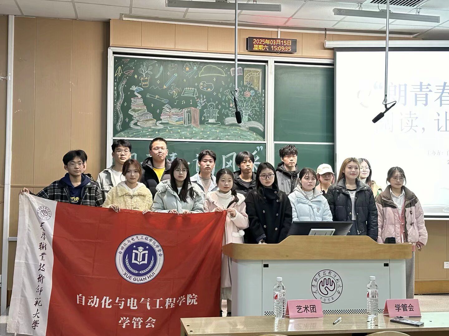 于阶梯教室102开展“朗青春,诵风采—阅读让青春更辽阔”主题读书分享活动。本次活动由学院学管会主办,通过多样化的活动形式吸引百余名青年学子到场参加,现场气氛热烈。