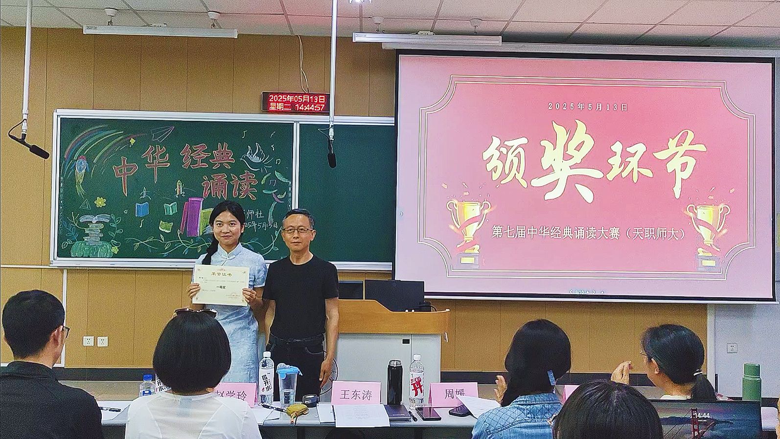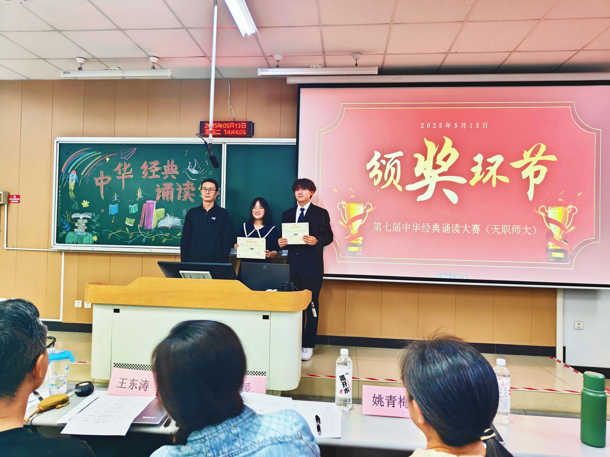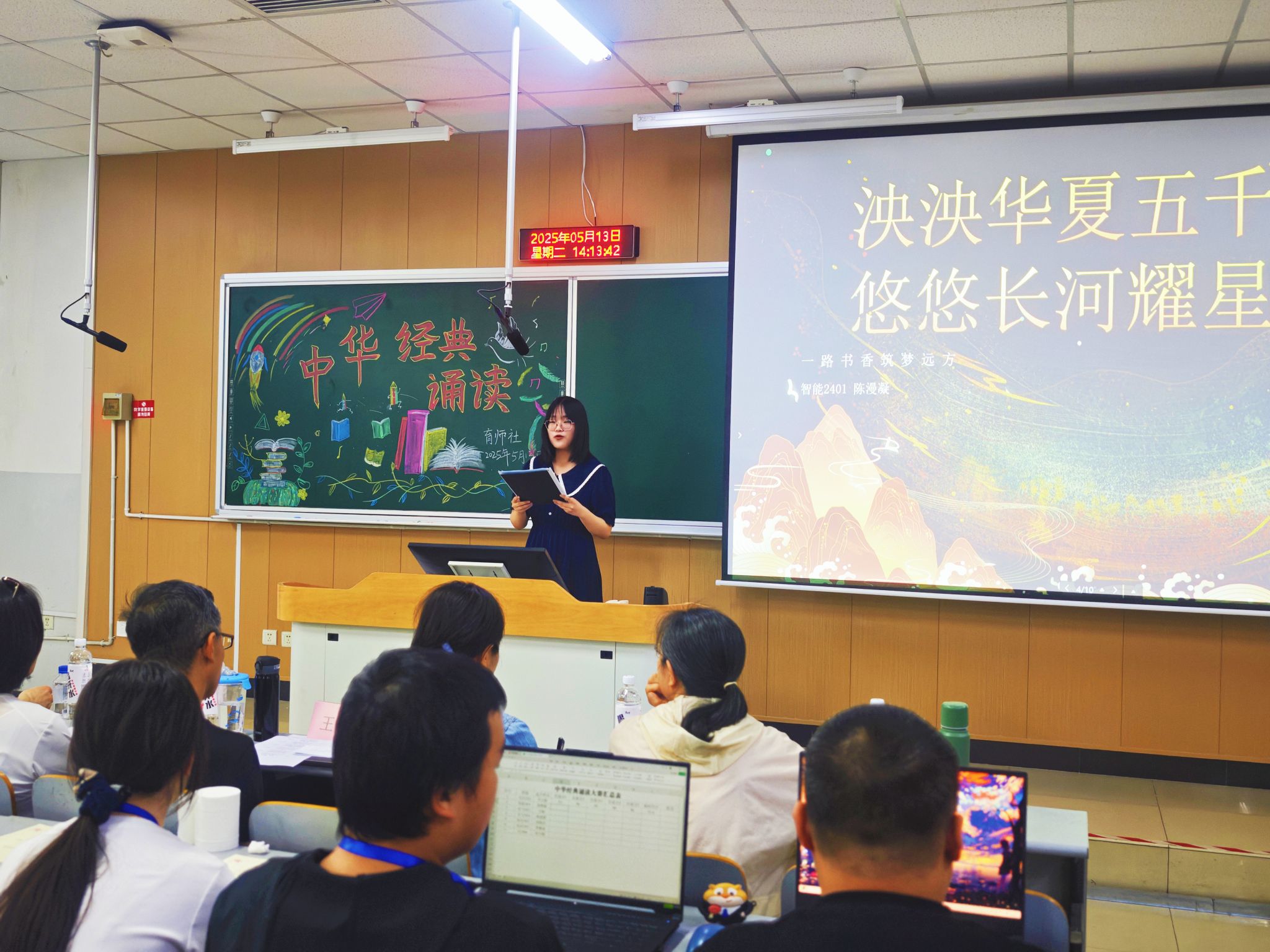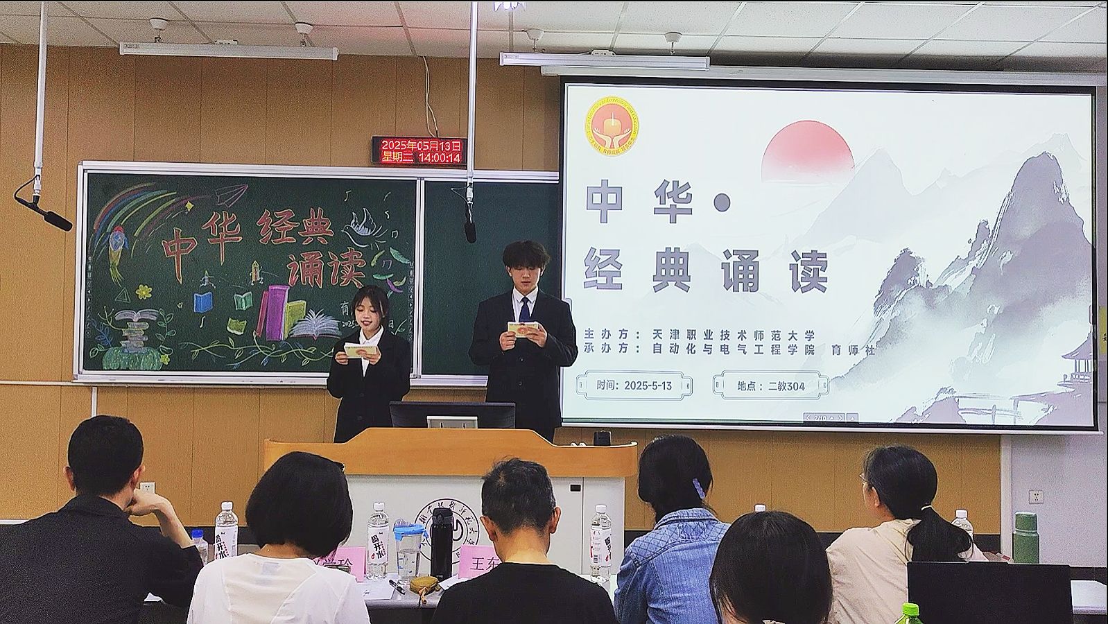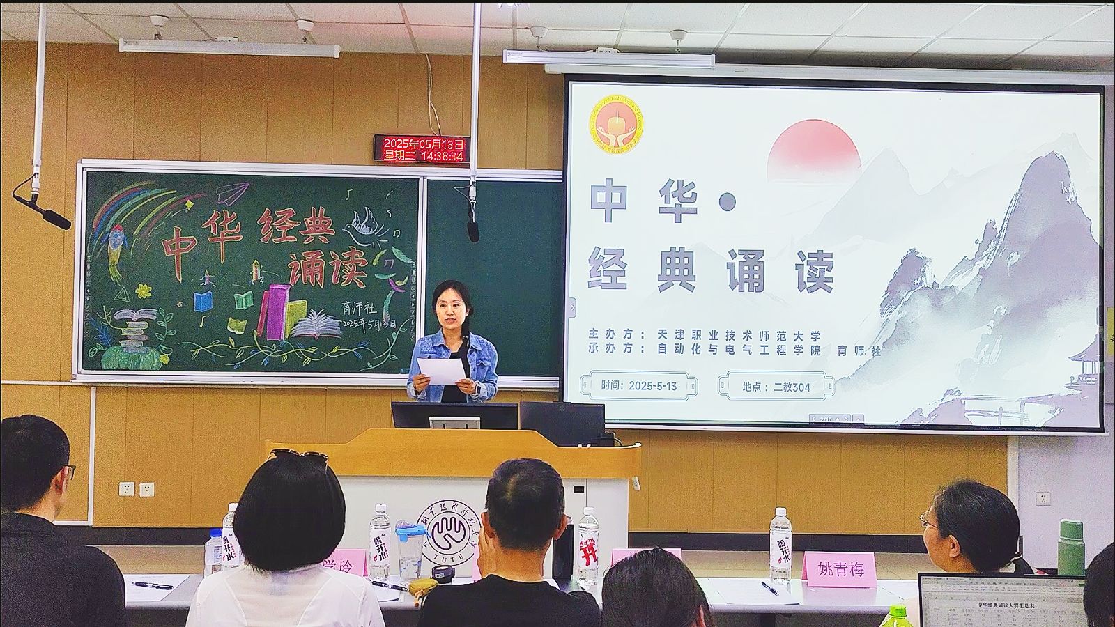 育师社承办,邀请学院优秀教师王东涛、姚青梅、周媛、赵学玲、朱晓松组成专业评委团。来自不同专业,不同年级的众多诵读爱好者齐聚一堂,以声传情,共赴这场文化盛宴。