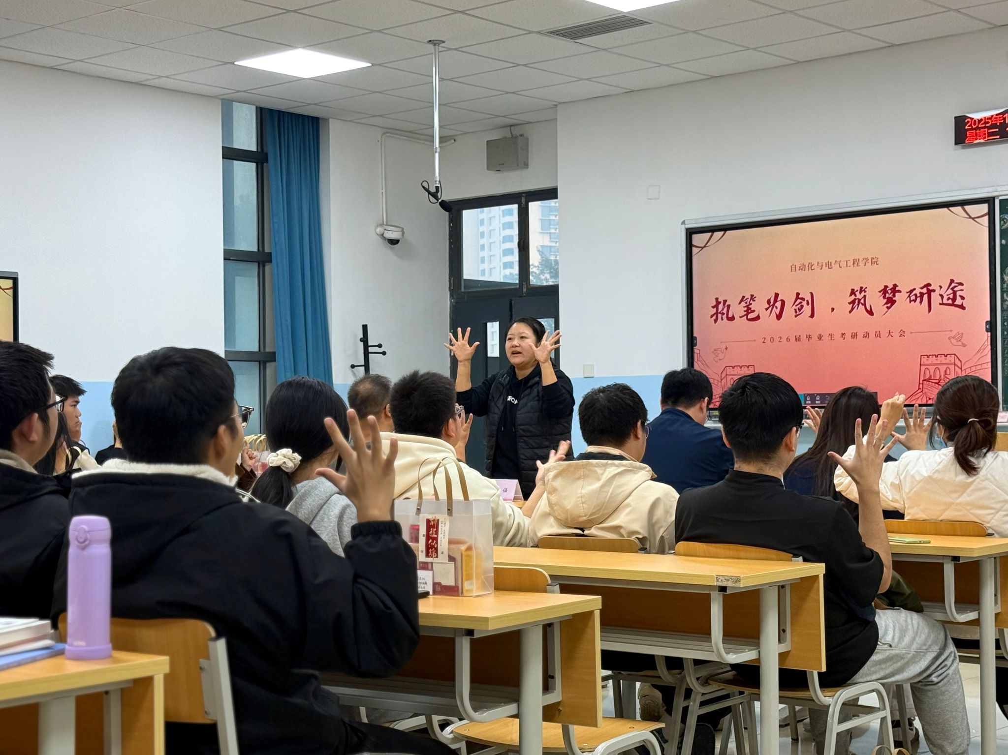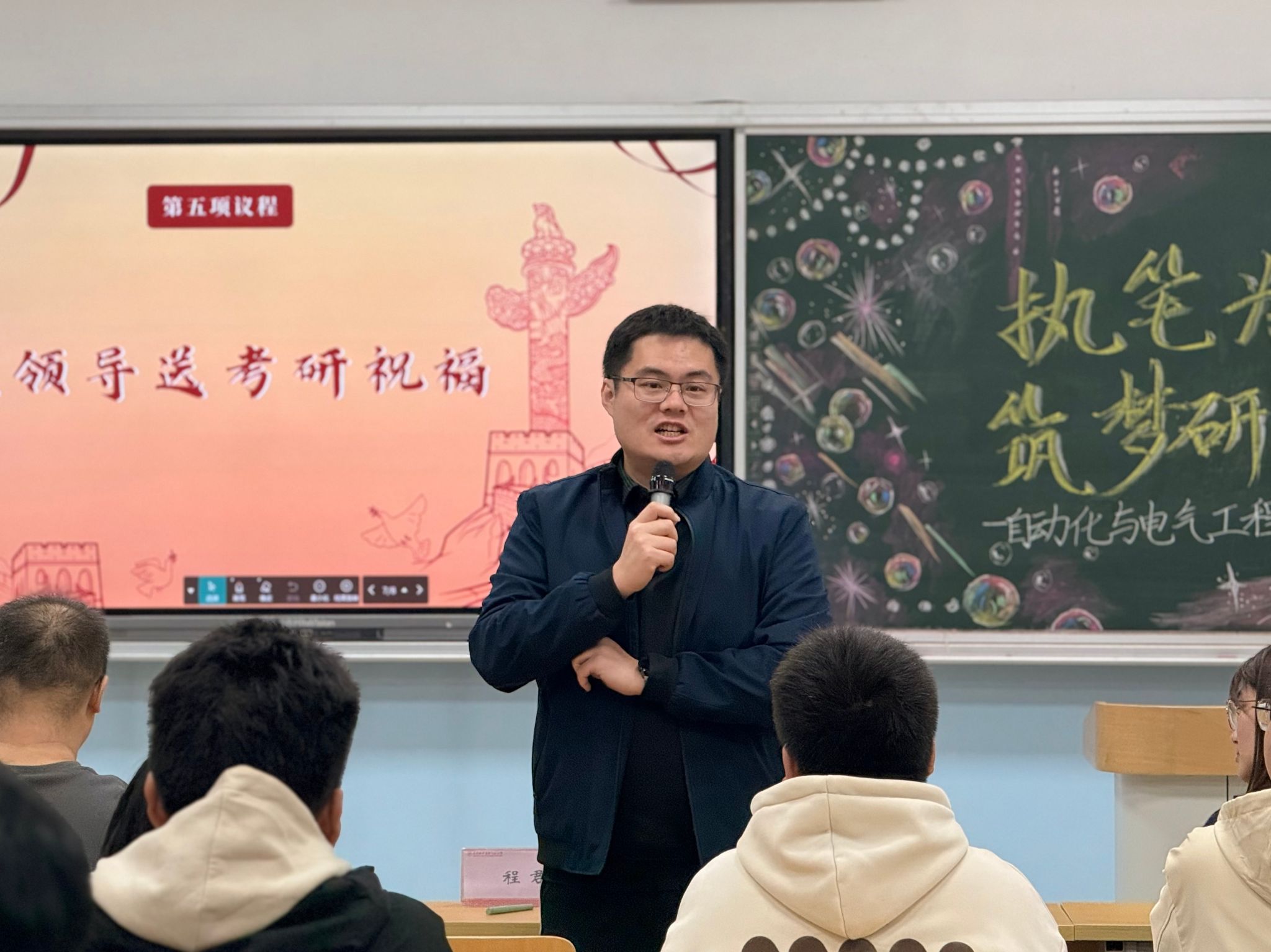 最后,程君与董建为同学们送上真挚祝福,鼓励大家珍惜时光、脚踏实地,以坚韧不拔的毅力攻克难关,在研途上书写精彩篇章,并表示学院将全力为考研学子提供支持与保障,为学生考研之路保驾护航。