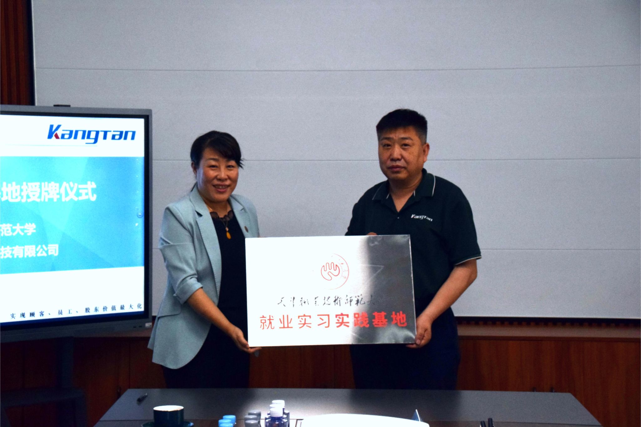 在与会人员的共同见证下,校企双方举行签约授牌仪式。吴平与赵根平代表双方共同签署了校企合作协议,李靖代表学校向企业授予“天津职业技术师范大学就业实习实践基地”牌匾。此次签约与授牌,标志着双方在搭建人才共育平台、促进毕业生高质量就业方面迈出了实质性步伐,为建立长期稳定的校企战略合作关系奠定了坚实基础。