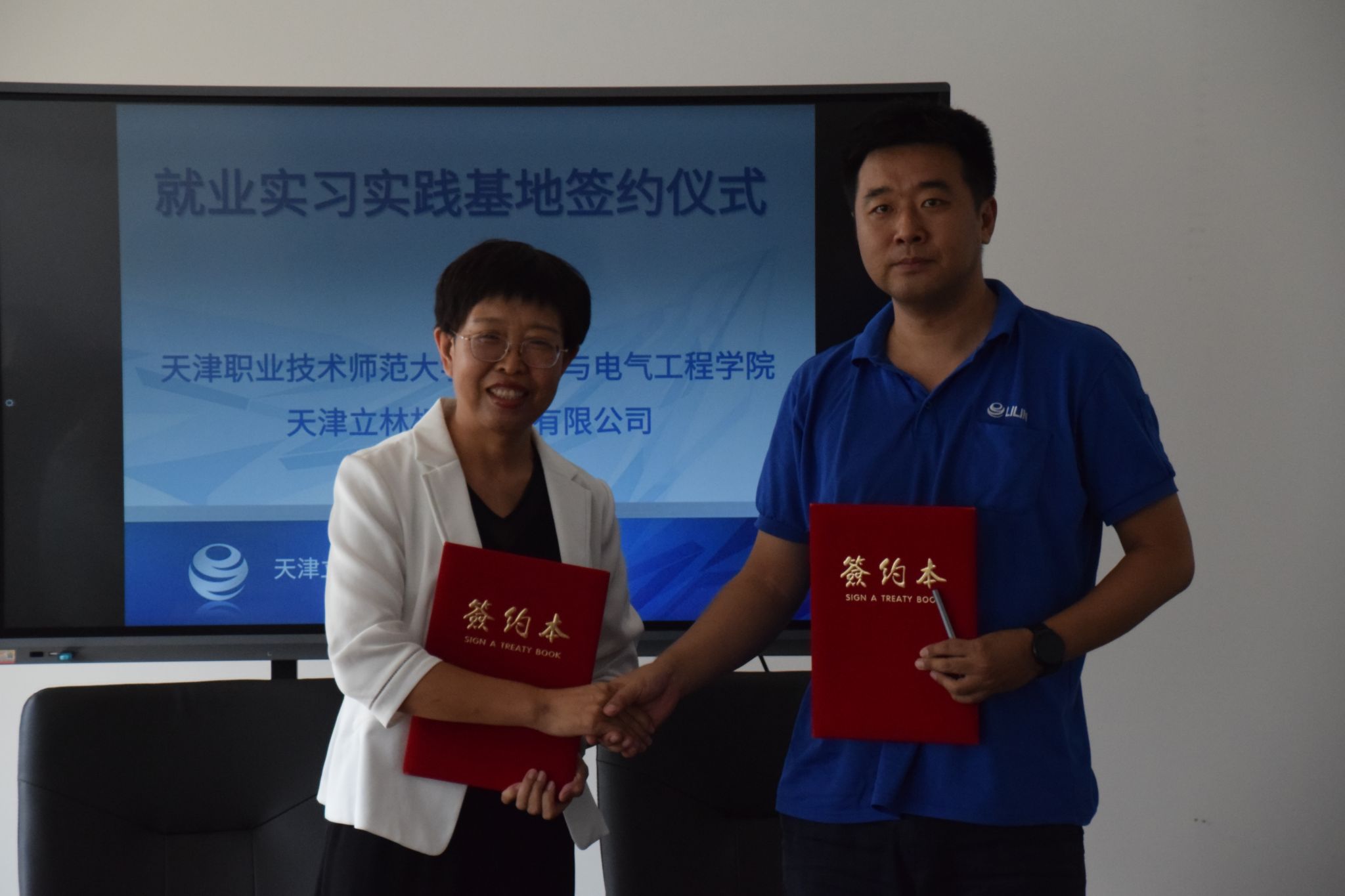 在与会人员见证下,双方举行签约授牌仪式。王冬霞与张伯弢代表双方共同签署校企合作协议,李靖代表学校向企业授予“天津职业技术师范大学就业实习实践基地”牌匾。