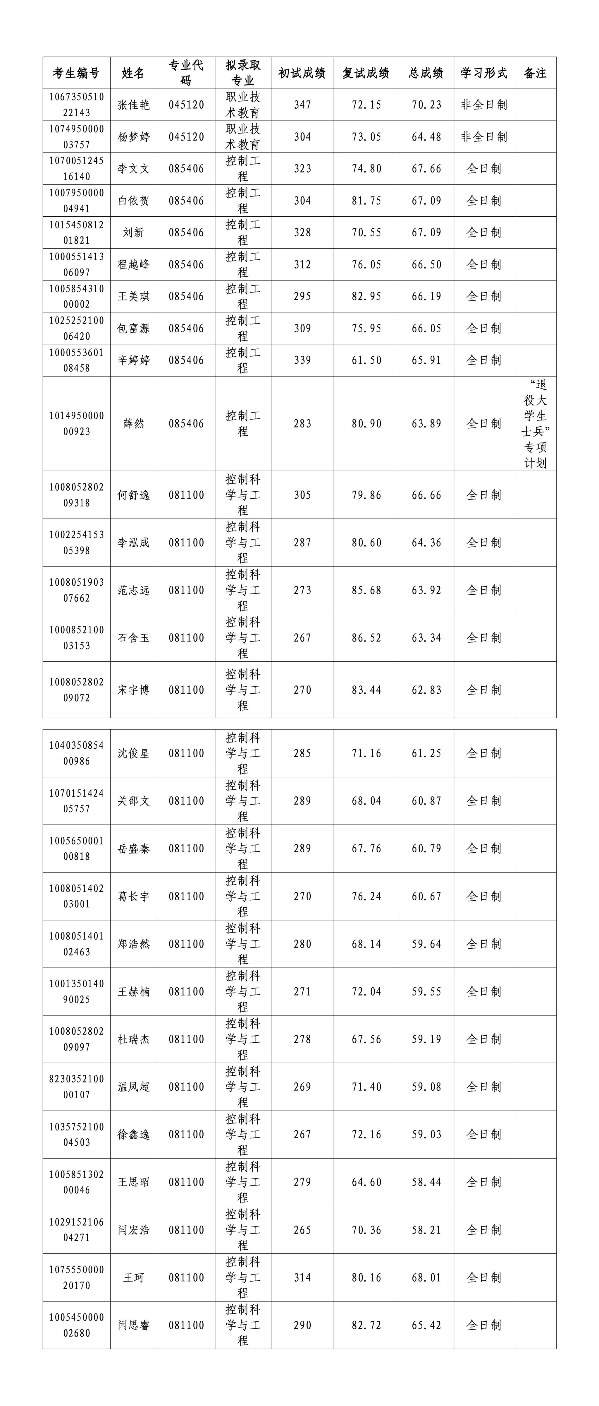天津职业技术师范大学 魔镜号 2025年硕士研究生拟录取名单(第一次调剂)
