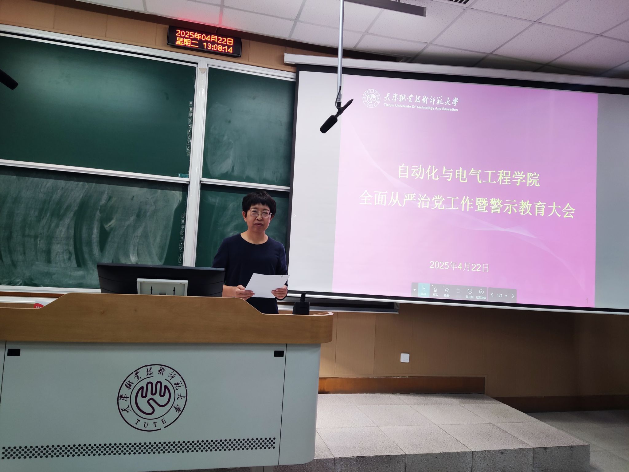 在阶梯教室召开全面从严治党工作暨警示教育大会。学院全体教职工参会,会议由学院党委副书记兼纪委书记程君主持。